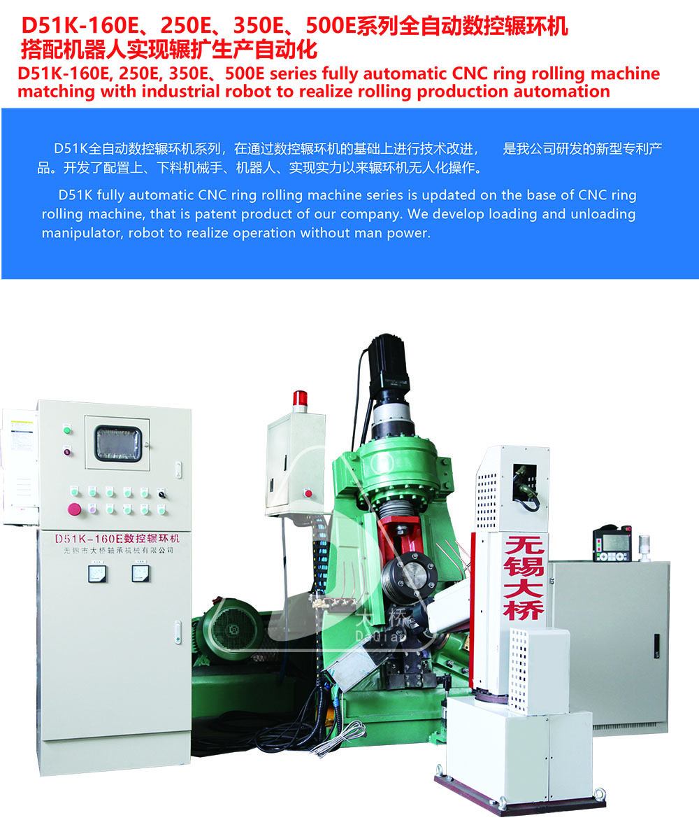 D51K全自動數(shù)控輾環(huán)機系列,在通過數(shù)控輾環(huán)機的基礎(chǔ)上進(jìn)行技術(shù)改進(jìn),是我公司研發(fā)的專利產(chǎn)品。開發(fā)了配置上、下料機械手、機器人、實現(xiàn)輾環(huán)機無人化操作。